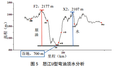 (1)管道沿線落差大, U型彎多。管道沿線高程起伏大, 50公里內(nèi)落差大于1000米的U型彎有4處之多,世界罕見。