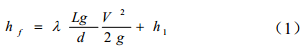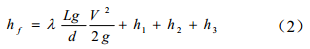 從圖 2可以看出,如果多重起伏管道投水排氣效果非常理想,在此過程中泵出口的最大阻力應(yīng)該發(fā)生在水頭翻越靠后的高點時。其阻力包括沿程摩阻和翻越高點的靜壓力,如方程(1)所示。