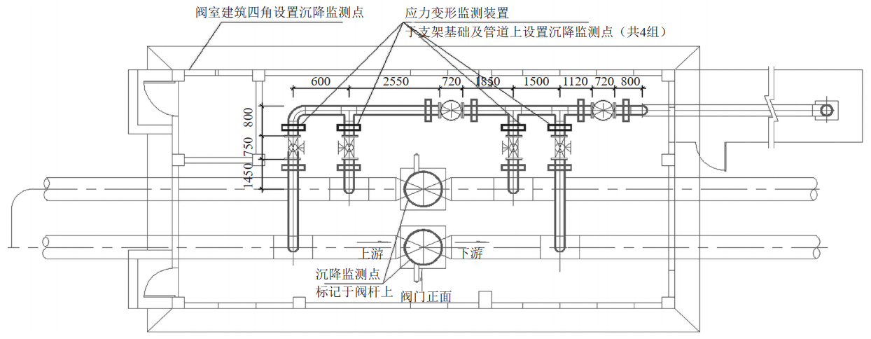 圖 2 閥室管道沉降監(jiān)測裝置布置示意圖