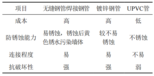 (5)常用套管材料及性能比較見表 1,目前以選用UPVC(硬PVC)管為主。