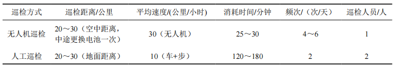 通過與人工巡檢比較,無人機巡檢比傳統巡檢方式更安全,巡檢效率更高,并降低了巡檢成本。單任務效率對比如表 1所示。