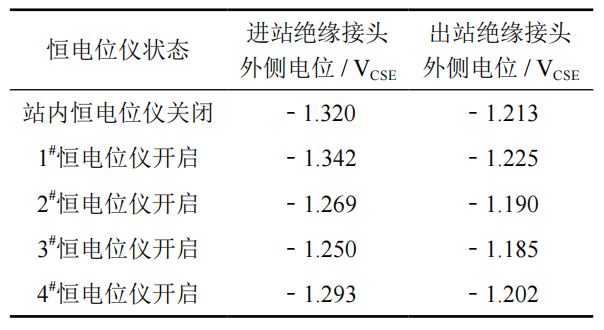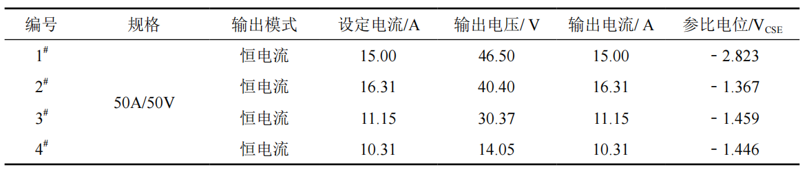 表 3 治理措施實(shí)施后恒電位儀的參數(shù)及運(yùn)行狀態(tài)