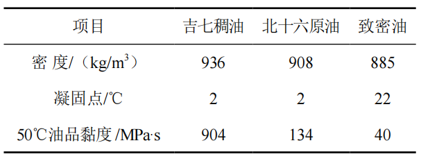 吉七稠油、北十六原油、吉七致密油三種油品物性見(jiàn)表 1。