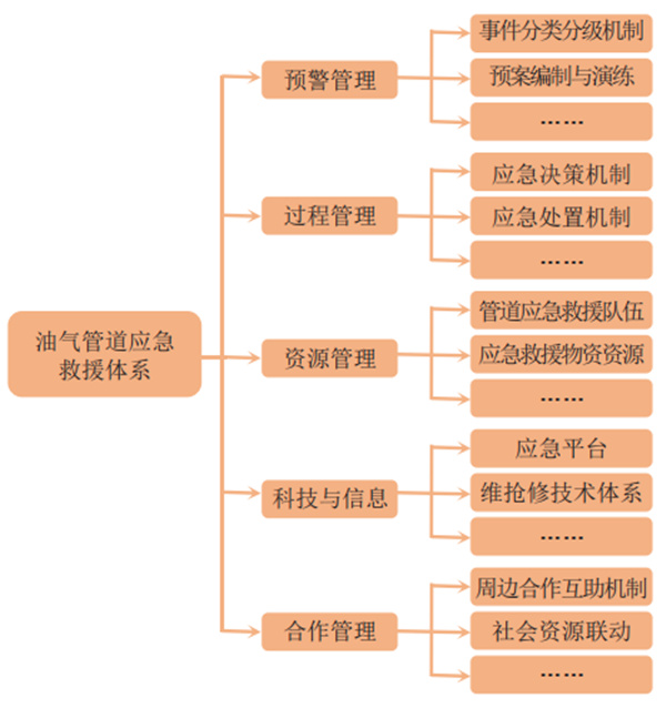 六是建立應(yīng)急救援體系。從健全應(yīng)急準(zhǔn)備,完善預(yù)案,加強(qiáng)預(yù)案演練,完善應(yīng)急物資儲(chǔ)備和調(diào)動(dòng)機(jī)制等方面,建立系統(tǒng)的油氣管道應(yīng)急救援體系(圖 3)。