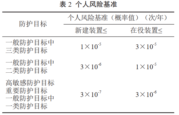 個人風險表示由于事故而導致特定防護目標的個人死亡概率,詳見表 2。