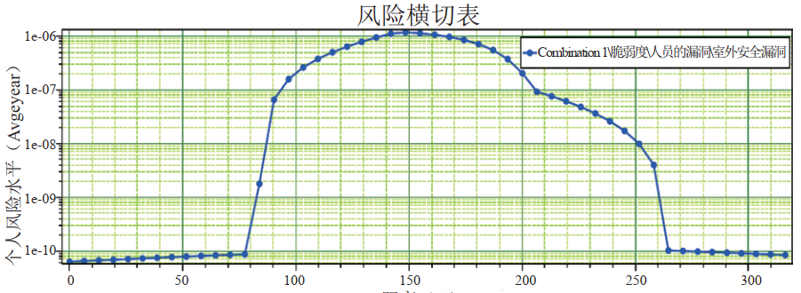 圖 2 國內(nèi)某管道特定位置個人風險橫切圖