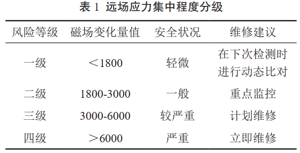 (2)遠(yuǎn)場應(yīng)力風(fēng)險(xiǎn)等級。遠(yuǎn)場應(yīng)力風(fēng)險(xiǎn)等級如表 1所示。