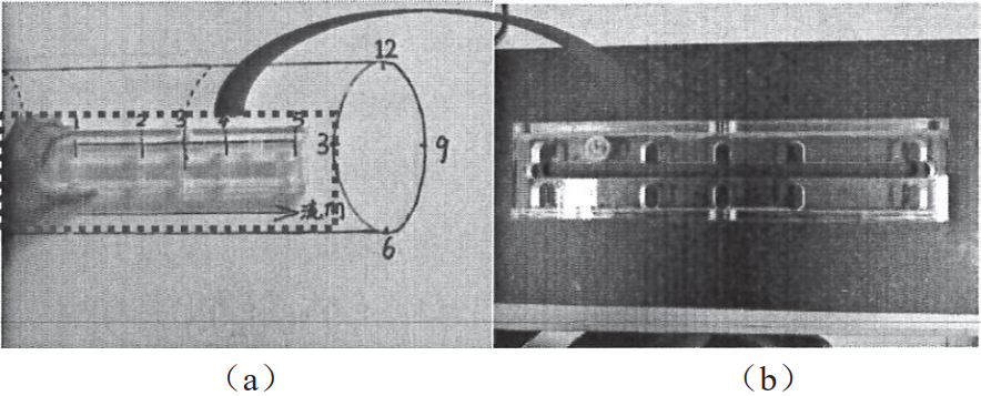 基于缺陷焊縫應(yīng)力檢測結(jié)果,采用矯頑力測量儀對西三線某作業(yè)區(qū)初次測量的34處環(huán)焊縫中軸向矯頑力和環(huán)向應(yīng)力較大的10處環(huán)焊縫進(jìn)行纖維復(fù)合材料補(bǔ)強(qiáng)前后的應(yīng)力復(fù)測及對比。為確保測試合理和有效,采用統(tǒng)一測點(diǎn)距離和位置,如圖 5所示測點(diǎn)布置。