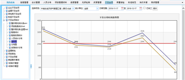 (2)提升QHSE管理水平。通過開發(fā)隱患辨識手機(jī)管理功能,實現(xiàn)了實時發(fā)送和閉合管理,F(xiàn)場監(jiān)理人員可用手機(jī)直接發(fā)布辨識出的QHSE(質(zhì)量管理體系)隱患,由監(jiān)理部門確認(rèn)并通知責(zé)任單位落實整改,整改完畢后由現(xiàn)場監(jiān)理人員進(jìn)行確認(rèn)。該平臺對隱患類型、分布、趨勢進(jìn)行自主統(tǒng)計和自動分析(圖 2),供監(jiān)理人員找準(zhǔn)管控重點。