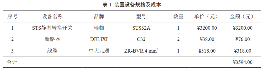 (2)市電引入冗余供電裝置構成簡單、投資較小,應用前景好。