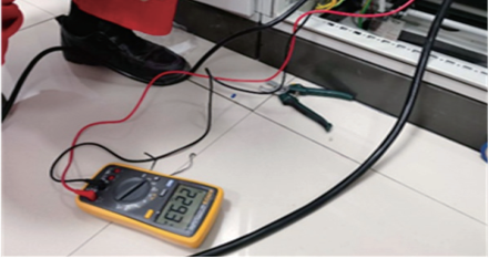 空載試驗即STS輸出端無負載工況下,將STS輸出端與萬用表連接的同時,斷開圖 1中UPS線纜即M1進線,觀察萬用表測量值有無中斷現象,如圖 2所示。待載試驗即STS輸出端供電PLC本地0#機架工況,斷開機架冗余電源模塊中的任意一塊,基于在用電源模塊掉電,控制器實現主備切換,開展UPS掉電STS無間斷切換市電試驗。
