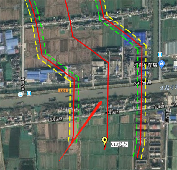 圖 4 外延200 m終點(diǎn)跨越河水時(shí)正常外延