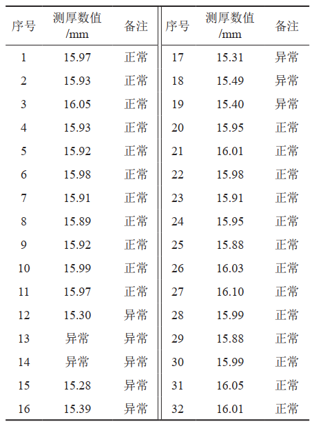 表 2 壓力管道測厚驗證數(shù)據(jù)表