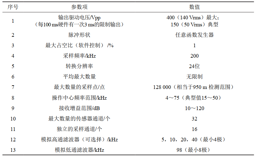 利用卡環(huán)式超聲導波設備對中貴線某輸氣場站內(nèi)壓力管道進行現(xiàn)場檢測。設備采用Teletest系統(tǒng),該檢測系統(tǒng)由主機、探頭及安裝有數(shù)據(jù)軟件的計算機組成,可快速檢測管體的內(nèi)部和外部腐蝕及缺陷,能夠?qū)崿F(xiàn)對大于管道截面積3%的缺陷的快速篩查。場站天然氣管道設計壓力10 MPa,工作壓力5.73~7.50 MPa;設計溫度65 ℃,工作溫度5.08~13.38 ℃。超聲導波檢測設備技術參數(shù)如表 1所示。