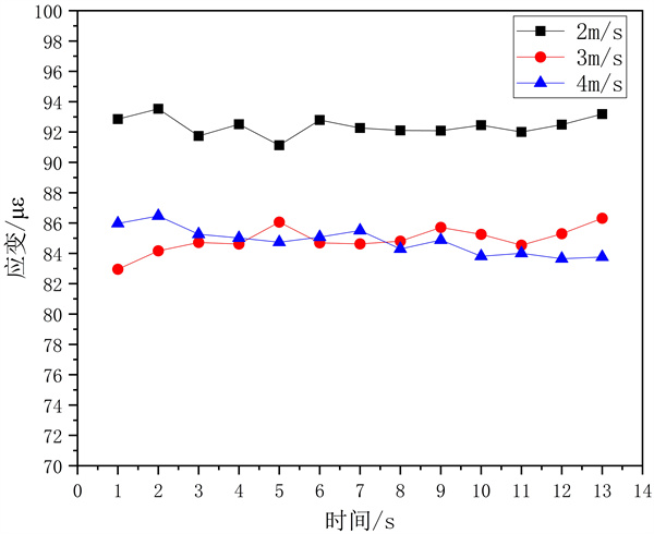 3.3 不同風(fēng)載及拉力下懸索管橋應(yīng)變分布