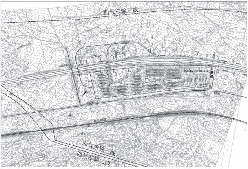 為支持地方經(jīng)濟建設,分公司主動與設計單位聯(lián)系,共同勘察管道附近地段,重新選址建設服務區(qū)。變更新址后的服務區(qū)圍墻距離西一線最近點357 m,距西二線420 m,距西三線(潛在影響半徑418 m)421 m,均在管道潛在影響半徑之外(圖 2)。