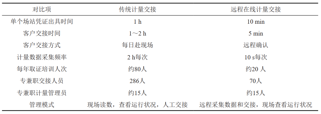 表 1 計量交接模式改變前后應用效果對比