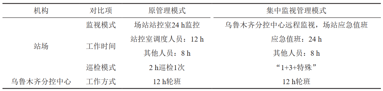 表 2 原管理模式與集中監(jiān)視管理模式特點對比