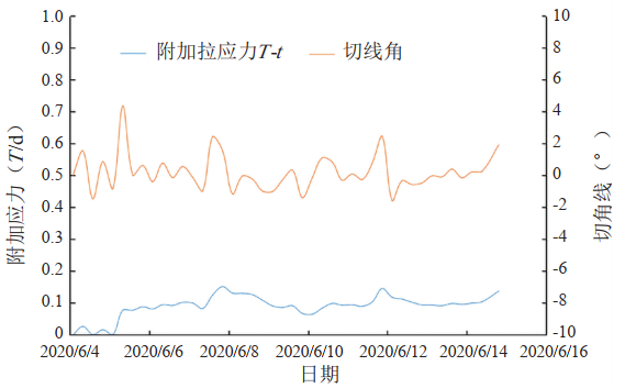 圖 5 管道附加應(yīng)力T-t曲線與切線角曲線