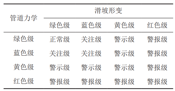 表 1 管道力學(xué)多級(jí)綜合預(yù)警等級(jí)