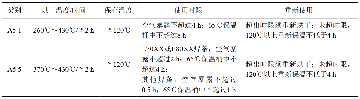 對于低氫型手工焊條,應進行烘干及保溫[2],相關規(guī)定如表 3所示。
