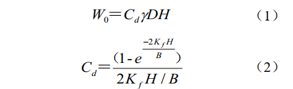 式中:γ為土層重度,N/m3;B為溝槽寬度,m;W0為單位管長的豎向永久荷載,N/m;Cd為土壓力集中系數(shù);D為管徑,m;H為管頂覆土厚度,m;Kf為土壤吸附作用強度系數(shù),砂土及腐殖土(干燥)0.192,砂土、腐殖土(濕的和飽和的硬黏土)0.165,塑性黏土0.148,流動性黏土0.132。表 1取砂土及腐殖土(干燥)Kf為0.192進行計算。