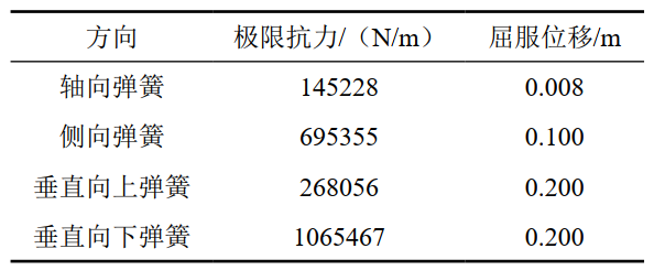 表 3 粉質(zhì)黏土三向土彈簧參數(shù)表