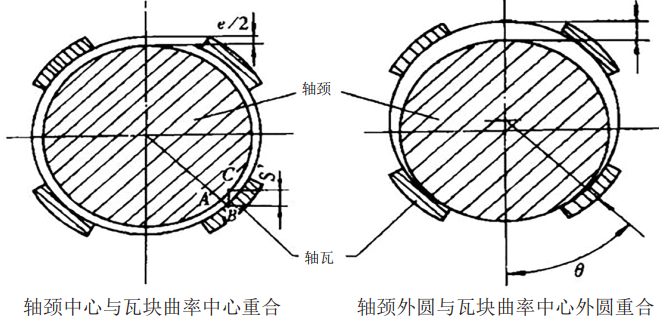 圖 2 軸頸中心與瓦塊曲率的位置關(guān)系