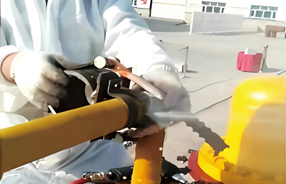 (1)用于帶PE層、帶壓管道泄漏。管道出現(xiàn)泄漏時,由于靜壓造成泄漏現(xiàn)場很難開展去除PE層的工作,環(huán)向式柔性卡具可以在帶PE層的情況下直接進行封堵作業(yè)。今年7月,國家管網(wǎng)維搶修中心進行了高壓帶壓封堵演練測試,使用新型環(huán)向式柔性卡具,在帶壓3 MPa且?guī)E層的管道上成功完成封堵(圖 2)。
