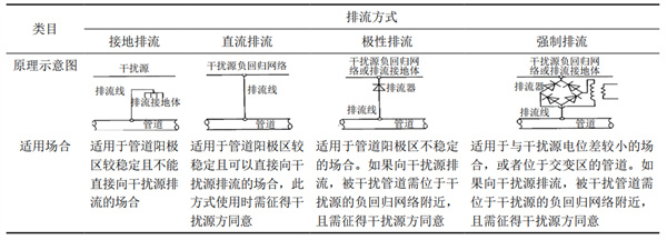 表 1 管道直流干擾常用的排流保護(hù)方式