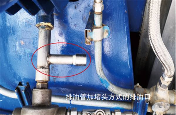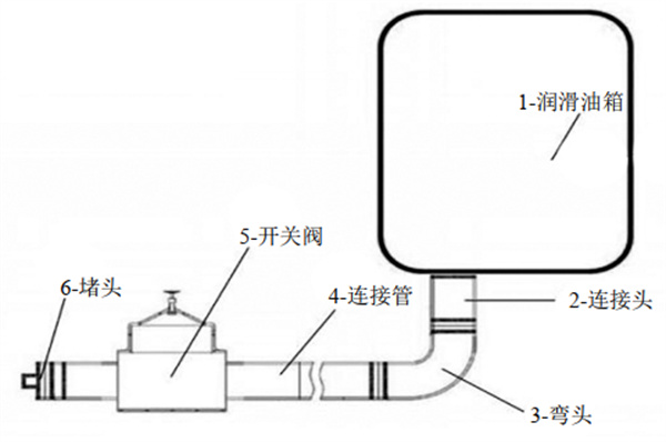 (1)連接頭進(jìn)口端與潤滑油箱排油口、連接頭出口端與彎頭進(jìn)口端固定密封連接。連接頭大小根據(jù)排油口內(nèi)絲大小決定,可分別為約25 mm(3/4寸)或33 mm(1寸)。
