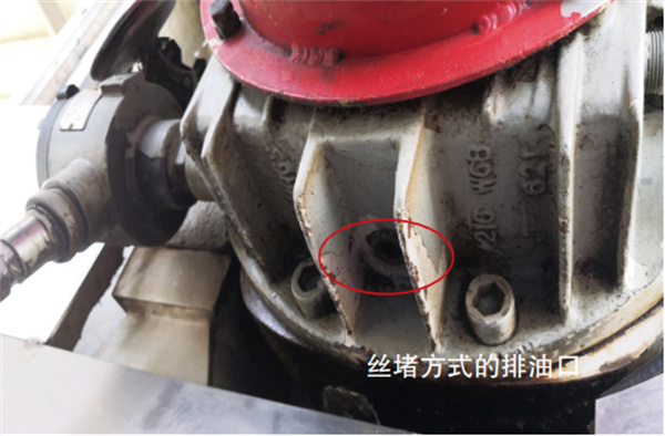 傳統(tǒng)的潤滑油箱排油口一般采用絲堵或者排油管加堵頭的方式(圖 2),需專用內(nèi)六方或者管鉗進(jìn)行拆卸、安裝,操作人員側(cè)身或者俯臥由下往上擰動(dòng)絲堵,若開關(guān)方向錯(cuò)誤,極易造成絲堵內(nèi)絲損傷而滑絲,嚴(yán)重時(shí)造成絲堵無法拆除。由于作業(yè)空間狹窄,作業(yè)人員配合不熟練易造成碰傷或操作失誤。絲堵一旦拆除,排放廢潤滑油時(shí)不受控制全部流出易噴濺到作業(yè)人員身上和地面上造成污染。
