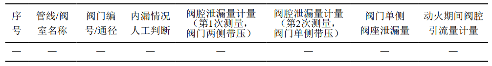 表 1 干線球閥內(nèi)漏檢查表示例