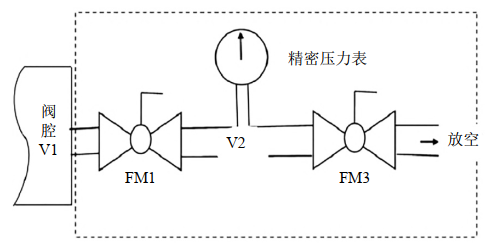 帶泄放口球閥,可在泄放口安裝壓力表觀察閥腔壓力上升速率或閥腔壓差來判斷閥門是否內(nèi)漏及計(jì)算泄漏量。根據(jù)理想氣體狀態(tài)方程,可計(jì)算出閥腔氣體在標(biāo)準(zhǔn)狀態(tài)下的體積V0(溫度影響可忽略):