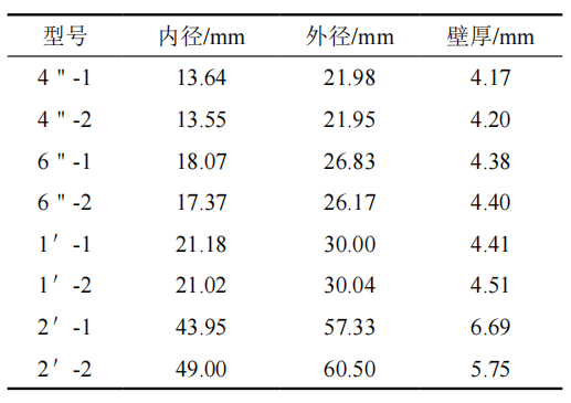 在管徑為457 mm,壁厚為7.1 mm的牽拉管段上預(yù)制了不同尺寸的焊接鋼管(表 1、圖 1)及人工通孔和補(bǔ)。ū 2),全面模擬與現(xiàn)場(chǎng)盜油孔信號(hào)相似的管道特征物。這四種管道特征物分別為:通孔(未焊接鋼管)、 焊接鋼管(只焊接鋼管、未打孔)、小開孔(打通孔后焊接鋼管)、補(bǔ)丁。