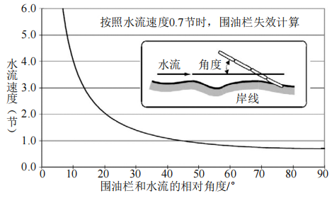 近年來,水上溢油事件時有發(fā)生,如果溢油發(fā)生在激流河道或水域,在水流和風(fēng)的作用下將會迅速擴(kuò)散和漂移,如果得不到及時圍控和回收,將會對大范圍水域和岸線造成污染。水域中溢油的綜合運動速度,取決于流水表面流速(一般采用距離水面0.5 m處的流速)和現(xiàn)場風(fēng)速沿水流方向的作用分量。當(dāng)溢油的綜合運動速度大于1節(jié)(0.51 m/s)時,溢油會從圍油欄的底部逃逸,則圍控和回收將是很困難的事情。為此需要研究激流中圍油欄布設(shè)技術(shù)和方法,首先調(diào)查清楚河流地貌和河水流動情況,選擇水流較緩慢的區(qū)域布設(shè)圍油欄。在水流速度較快的水域,通過改變圍油欄的布設(shè)形式和布設(shè)角度,減小激流在圍油欄垂直方向上的相對速度,以便提高圍控效率,阻止其進(jìn)一步擴(kuò)散和漂移。