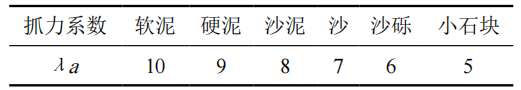 表 1 不同底質(zhì)下錨的抓力系數(shù)