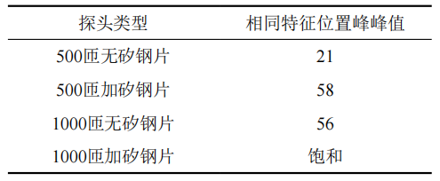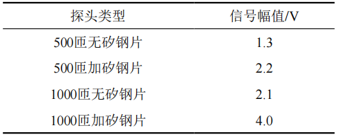 表 1 不同探頭類(lèi)型缺陷信號(hào)捕捉強(qiáng)度試驗(yàn)結(jié)果