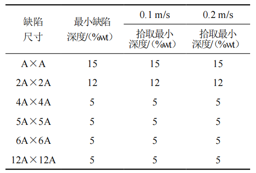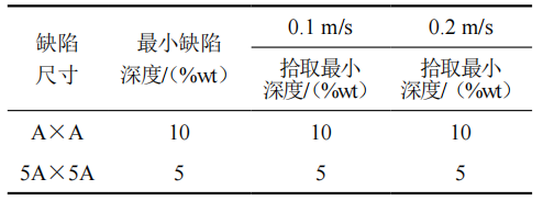 表 3 9.5 mm壁厚鋼管最小缺陷拾取能力