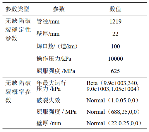 表 2 無缺陷管道破裂計(jì)算參數(shù)