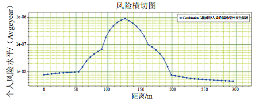 圖 5 眾合醫(yī)院高后果區(qū)定向鉆敷設(shè)管段個(gè)人風(fēng)險(xiǎn)橫切圖