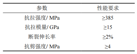 根據(jù)材料性能測試結果和鋪層試驗力學性能檢測結果,最終確定了復材套筒材料性能指標,如表 1所示。