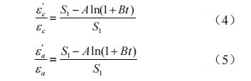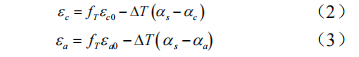 對復合材料進行修正后環(huán)向許用應變ε'c 和軸向許用應變ε'α分別為: