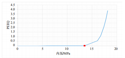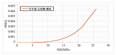 (2)在爆破壓力試驗中,如果沒有補強,13.46 MPa內(nèi)壓下缺陷塑性應變突變,管道爆破;但是在復材套筒的增強下,缺陷塑性應變只有0.02%,非常安全;在壓力達到23.84 MPa時,管道發(fā)生整體爆破,但缺陷內(nèi)部的應變也遠遠沒有達到爆破塑性應變。說明復材套筒對缺陷鋼管起到了有效的補強作用。