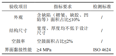 提出復材套筒修復施工質(zhì)量驗收指標,包括外觀、結構尺寸、空鼓率及界面黏接性能,用以指導現(xiàn)場施工,控制修復結構施工質(zhì)量,如表 2所示。