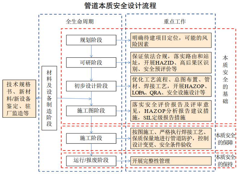 王學軍:設(shè)計是本質(zhì)安全的源頭,施工是保障,運行是保持,只有相關(guān)方各負其責,才能實現(xiàn)本質(zhì)安全設(shè)計的初衷。下面是一張管道本質(zhì)安全設(shè)計流程圖,它貫穿于管道從規(guī)劃到報廢的全生命周期。為方便大家理解,我作一簡要說明。