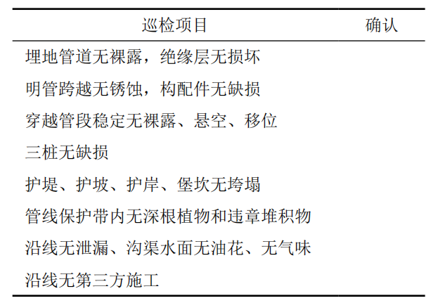 每個巡檢關(guān)鍵點(diǎn)設(shè)置巡檢注意項(xiàng)(表 1),一線巡線工到達(dá)關(guān)鍵點(diǎn)時(shí)移動APP彈出巡檢注意項(xiàng),需逐項(xiàng)核對消除,發(fā)現(xiàn)異常情況做好記錄并及時(shí)上報(bào)管段長或部門技術(shù)員。