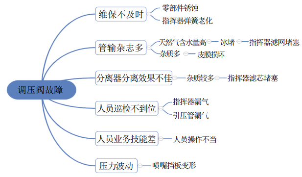 結(jié)合調(diào)壓閥維保技術(shù)規(guī)程及技術(shù)資料分析,繪制了調(diào)壓閥故障因素關(guān)聯(lián)圖(圖 1)。