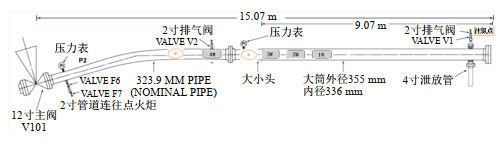 如圖 3所示,收球開始,首先關(guān)閉主干線V101隔離閥,通過放空管點(diǎn)火直到壓力降至698.5 kPa,并從V1處注氮置換直到放空管火焰熄滅。然后關(guān)閉F6和F7并打開V2,有少量黑色液體噴出,球筒壓力表P1、P2(量程0~6895 kPa)讀數(shù)為0 kPa。從V1移除注氮管并打開閥門繼續(xù)放空,打開盲板開始收球。1#、2#清管器完全進(jìn)入大筒被輕松取出,3#清管器停在變徑段(大小頭)附近、距離球筒口約7.6 m處,現(xiàn)場人員嘗試用9.1 m長的牽拉工具將其取出。拖拽過程中3#、4#清管器快速?zèng)_出撞到操作人員,致1人重傷,1人輕傷。同時(shí)黑色液體從V2噴濺而出。