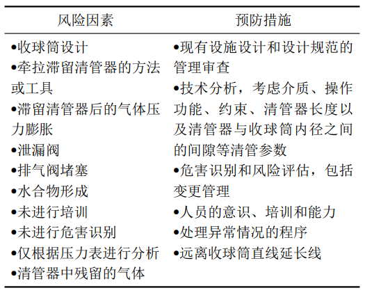 表 2 清管過程中風(fēng)險(xiǎn)因素和預(yù)防措施